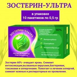 Показания: - аллергические заболевания; - заражения органов и крови радиоактивными металлами; - подозрение на грипп; - язвенная болезнь; - бронхиальная астма. Кроме того Зостерин-Ультра активно применяется для профилактики многих инфекционных заболеваний, а также раковых опухолей. При растворении в организме человека, превращается в гел..